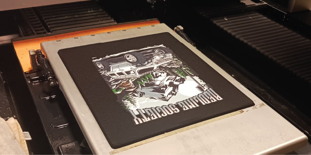 DTG Shirt Printing, is a process by which a digital image is printed directly onto your apparel using cutting edge printing technology and inks. This process allows us to print any quantity order with highly detailed full color designs at an affordable price. Our expert team of direct to garment printers, any design is possible. We ensure outstanding accuracy, exceptional consistency, phenomenal print output, and affordable rates with every order.